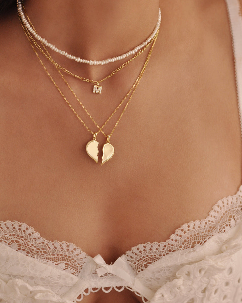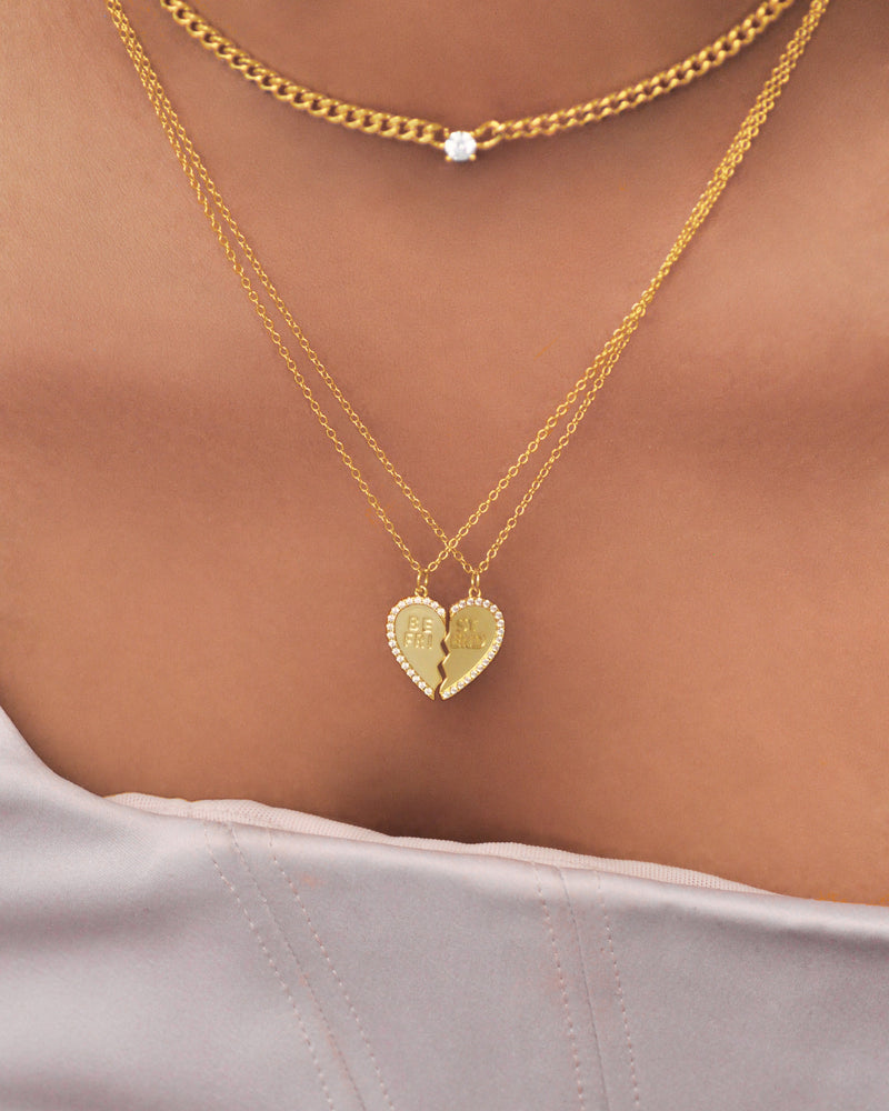 The Best Friend Heart necklace is designed to be shared between you and your best friend, or other meaningful person. Share one half of each charm with the person that matters most