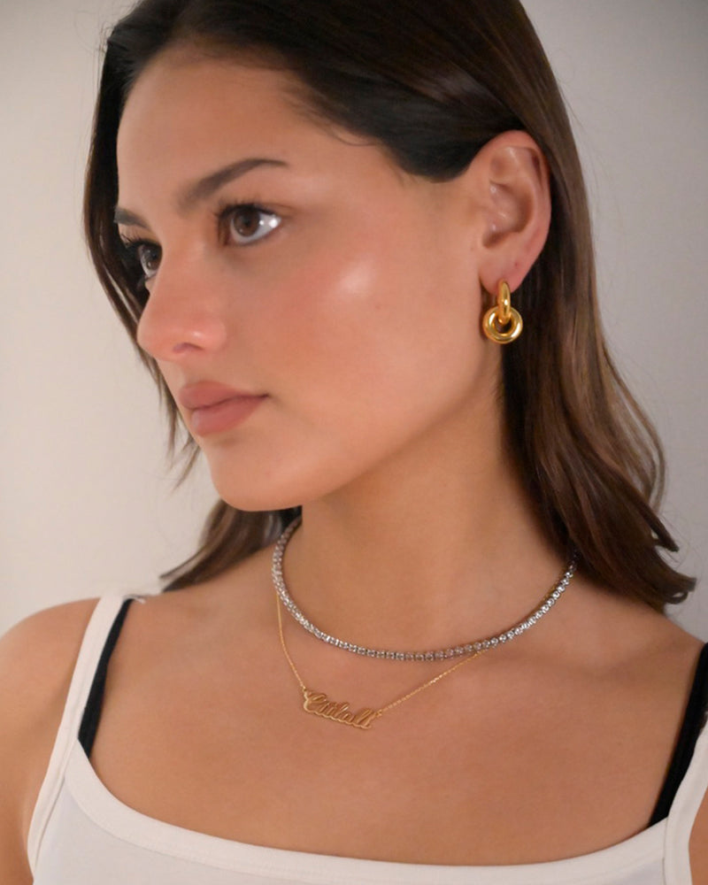 Two-in-one gold earrings. Wear it with or without the extra hoop. The double hoop earring make a perfect addition to your modern essential jewelry.