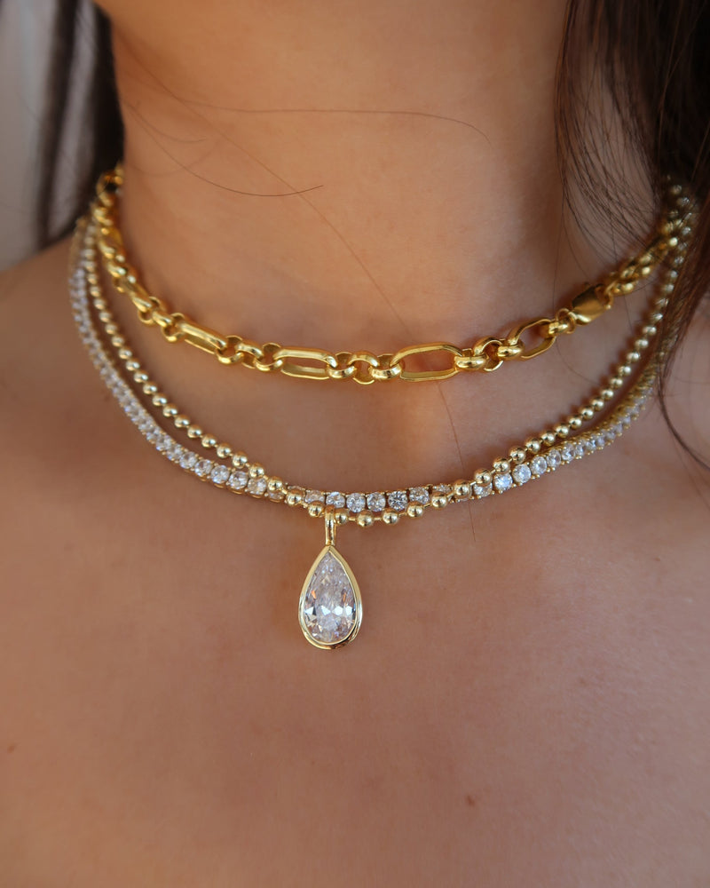 Made from 925 Sterling Silver and Lab-Grown Sapphire. The pear bezel pendant necklace is a timeless addition to your jewelry, comes in a beaded ball chain necklace