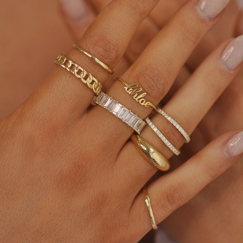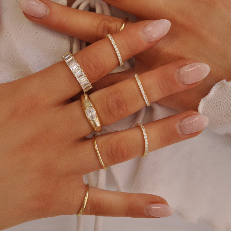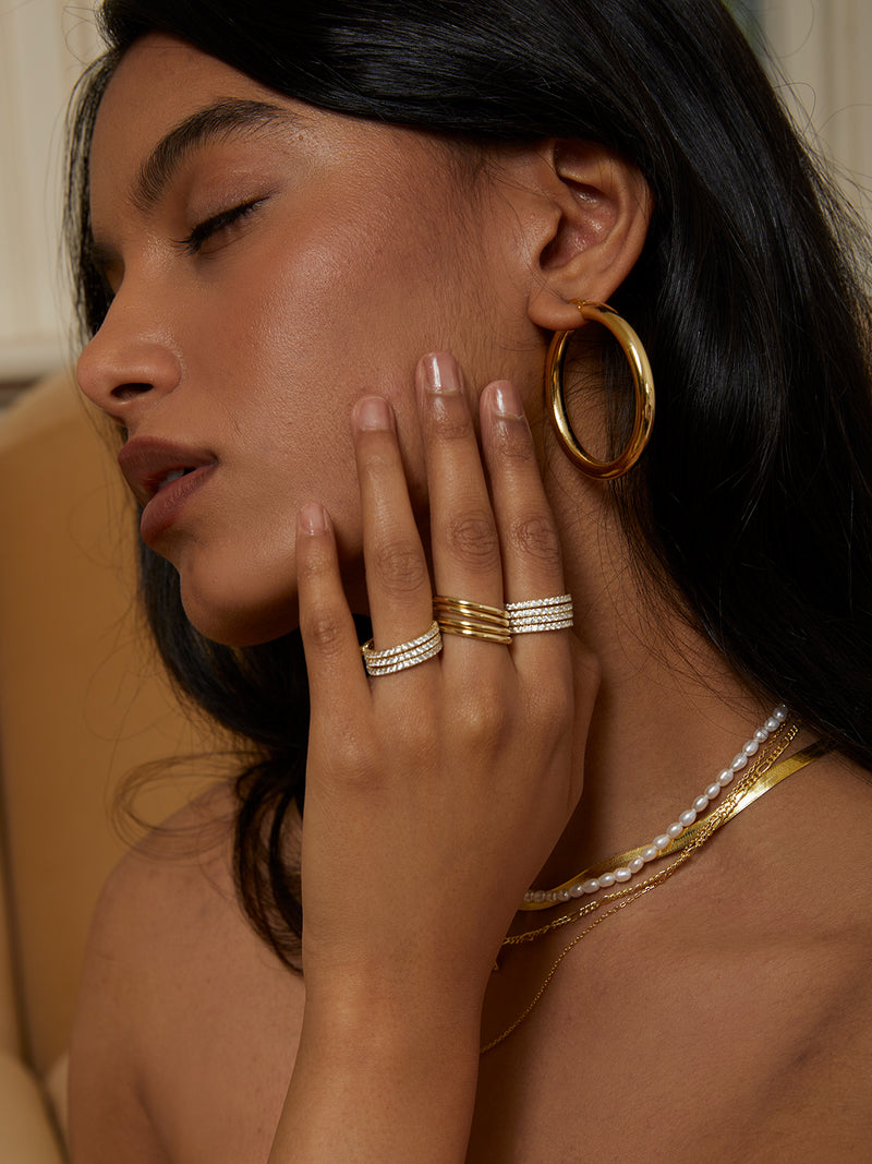 The perfect match. Includes one Gold Stacker Ring and one Gold Eternity Band Ring.