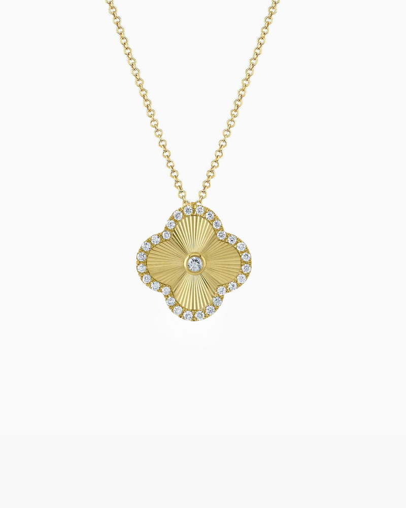 The Fluted Clover Pave Diamond Necklace, an elegant and timeless piece crafted from 14k gold vermeil and featuring a classic clover design