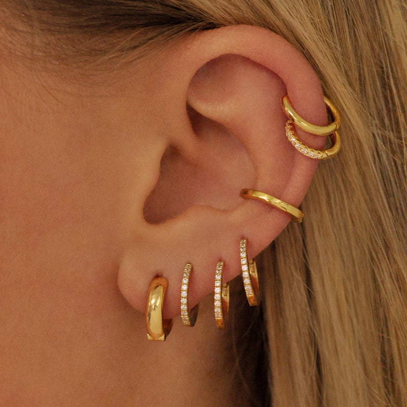 Your everyday essential hoops, our classic huggie earrings are designed to sit closely against your lobe. Perfect for stacking, pair them with our Lock Hoop Earrings and Gold Huggies.