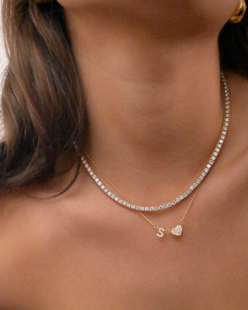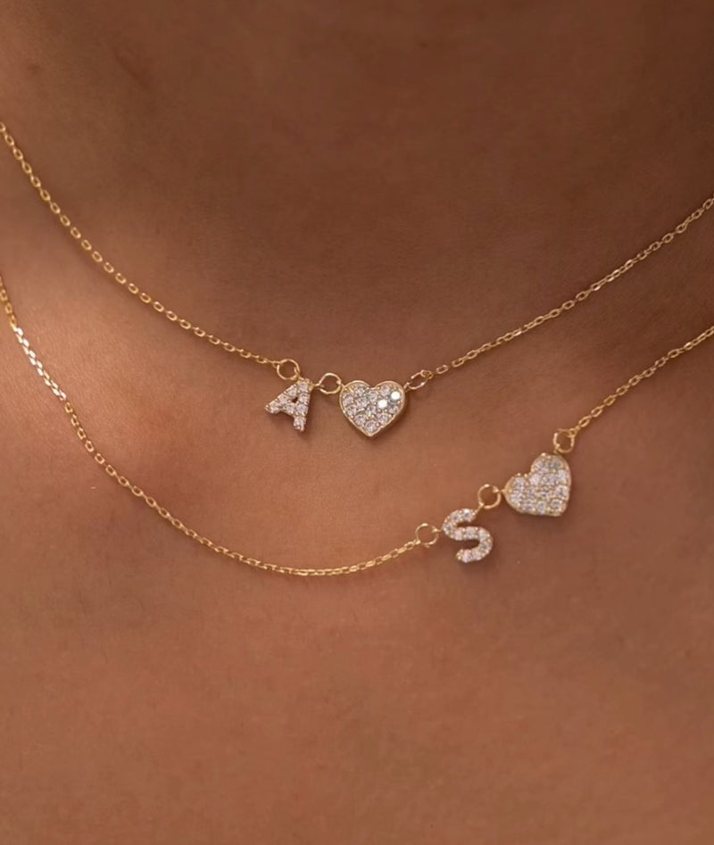 Add a personal touch to your jewelry collection with our Heart Initial Necklace. Each necklace features one letter and a pave heart charm, creating a one-of-a-kind piece. Perfect for gifting or treating yourself.