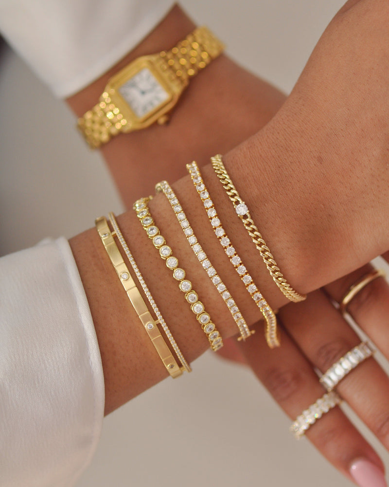 The classic tennis bracelet is handcrafted to perfection with gold vermeil that elevate every look.