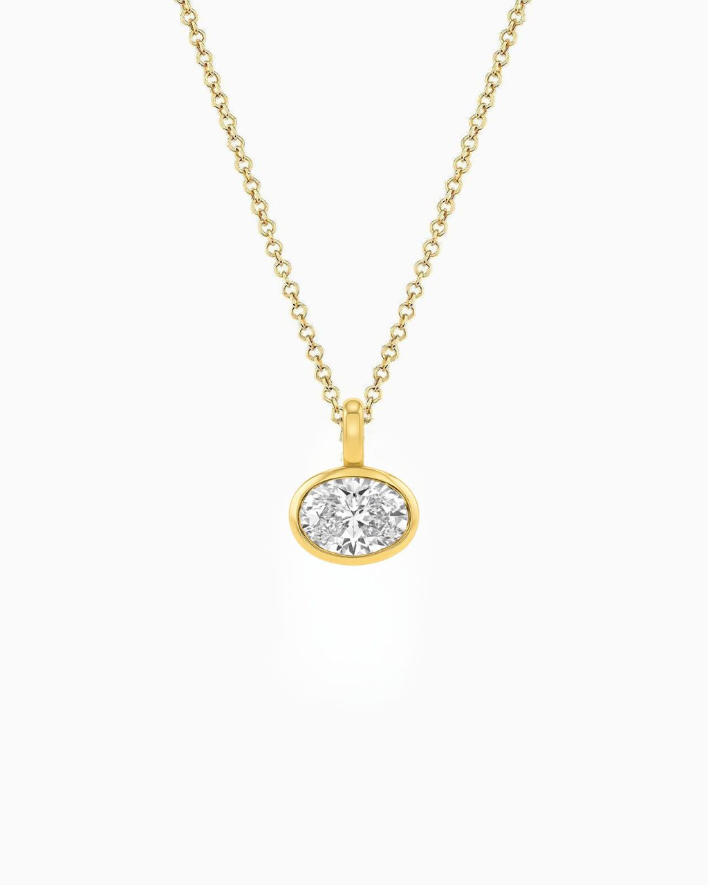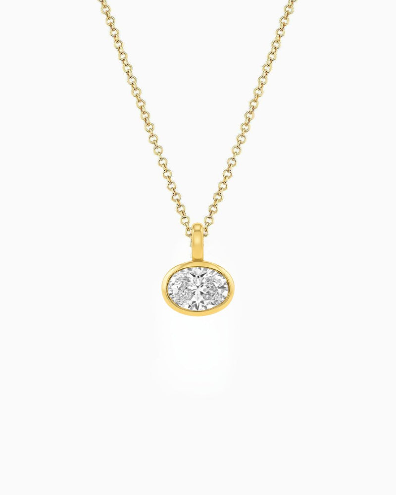 Made from 925 Sterling Silver and Lab-Grown Sapphire. The east west oval bezel pendant necklace is a timeless addition to your jewelry, comes in a figaro chain necklace