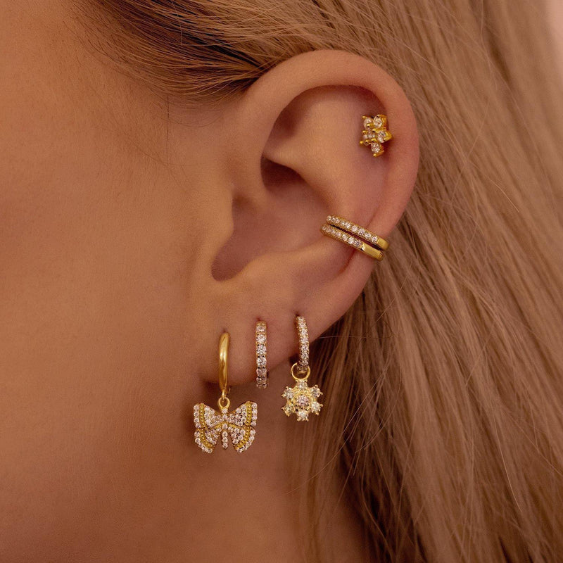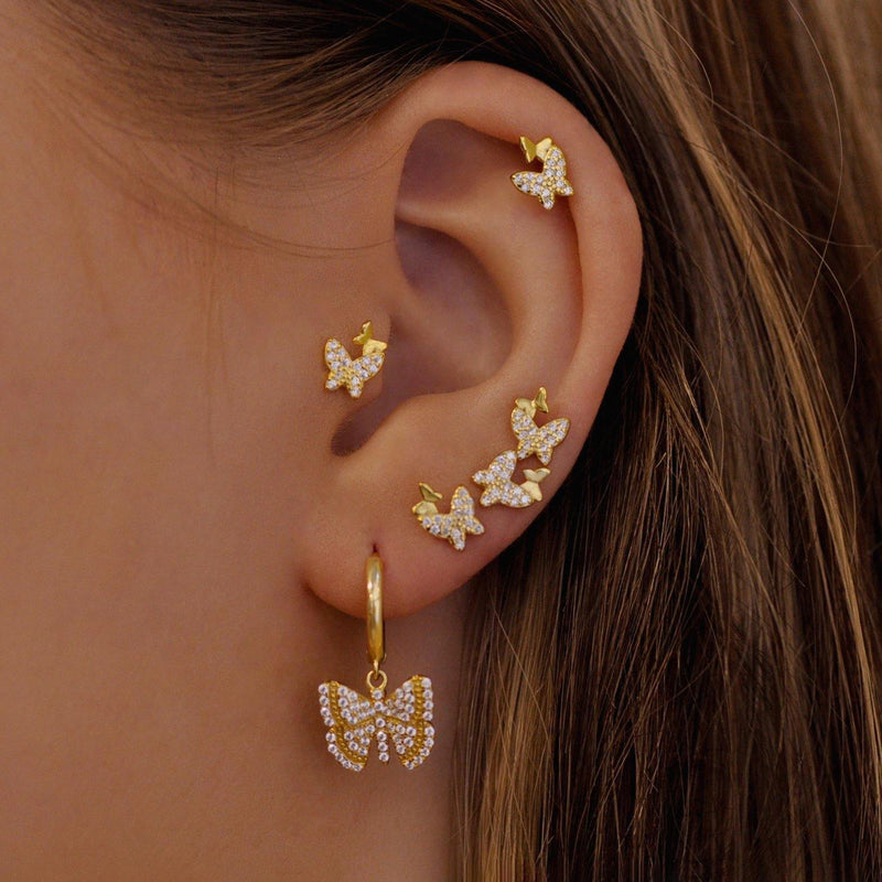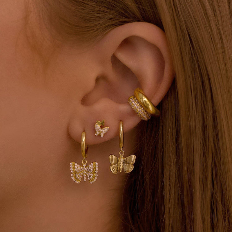 The enchanting pair of Pave Butterfly Huggie Earrings are made for dreamers. The sweet butterfly earrings feature a unique butterfly charm adorned in shiny crystal paves.