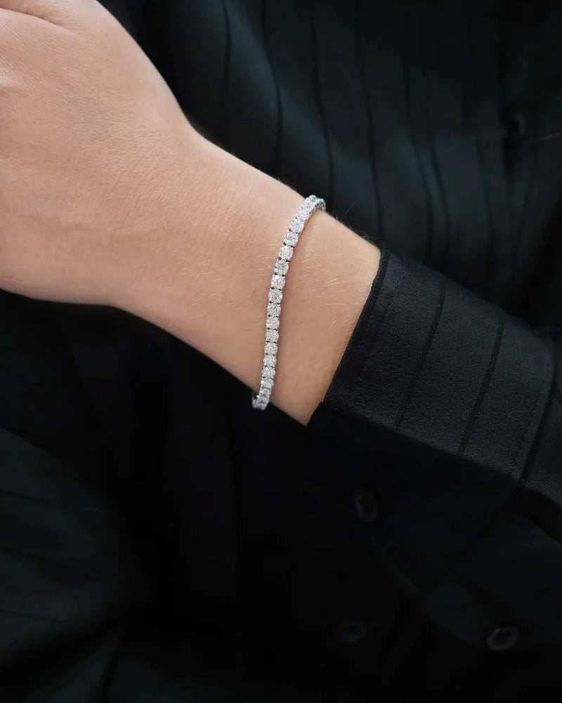 Crafted with a beautifully designed strand of clear CZ stones in our signature finishes, Our Noire Tennis Bracelet is a classic jewellery staple that's built for stacking.