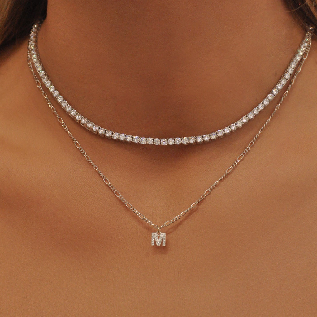 Wear your special letter close to your heart. The Tiny letter choker necklace features a CZ crystal letter pendant on our signature Figaro boyfriend chain - all ready to be personalized with your favorite initial.