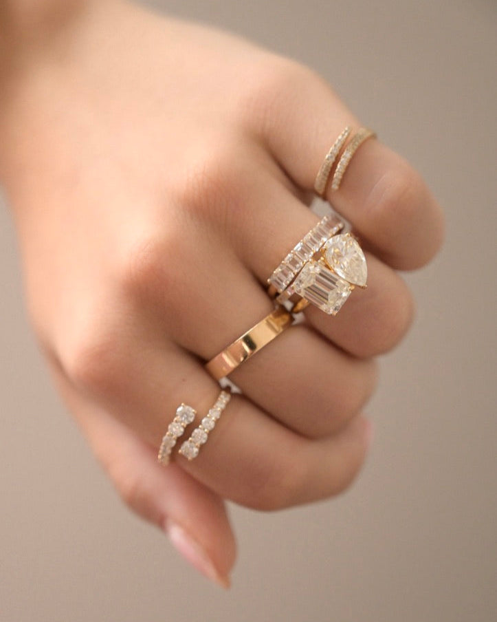 The ultimate statement ring, Toi et Moi - “you and me". Available here in three color combinations - white, yellow and emerald green