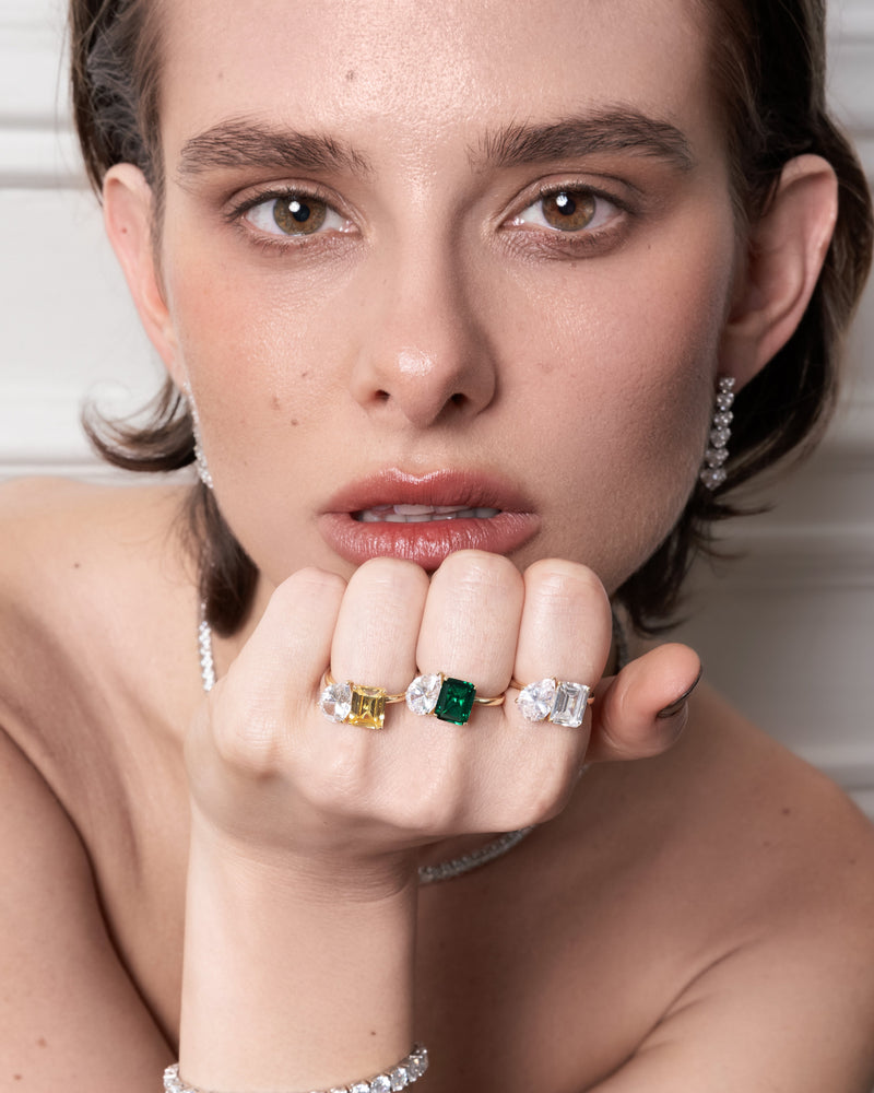 The ultimate statement ring, Toi et Moi - “you and me". Available here in three color combinations - white, yellow and emerald green